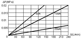 水流量-壓力差特性 (10"濾芯) |