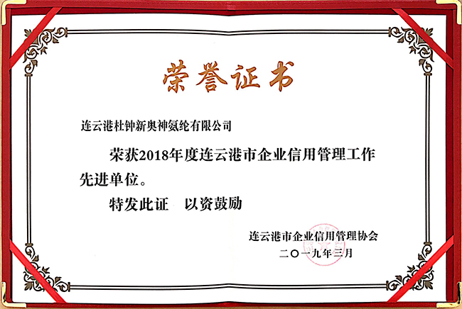 3月21日,在全市企業(yè)信用管理工作表彰大會上氨綸公司被連云港市企業(yè)信用管理協(xié)會表彰為“2018年度連云港市企業(yè)信用管理工作先進單位”。會上,共有33家優(yōu)秀企業(yè)獲此殊榮。