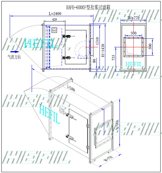 ◆鹽霧過濾箱主要由防雨器、過濾器、箱體三部分組成,防雨器和箱體一般采用優(yōu)質(zhì)不銹鋼304/316L材料