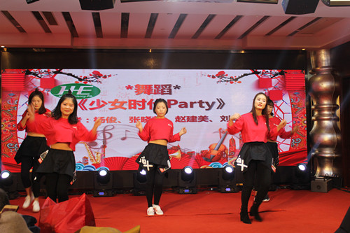 晚宴正式開始后,禾益員工為大家?guī)砹司式^倫的視聽盛宴。一首激情飛揚(yáng)、絢麗奔放的《少女時(shí)代Party》拉開了新春晚會(huì)的帷幕,全場演出,高潮迭起,令人目不暇接。