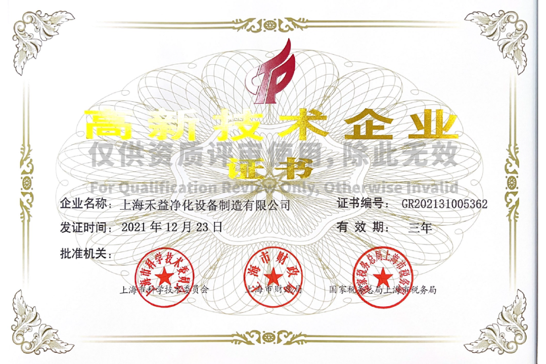禾益環(huán)境高新技術(shù)企業(yè)認(rèn)證從2015年定、2018/2021年復(fù)審再次認(rèn)定,在《關(guān)于公示2021年度上海市第五批擬認(rèn)定高新技術(shù)企業(yè)名單的通知》的公示中,上海禾益凈化設(shè)備制造有限公司再次入圍上海市2021年高新技術(shù)企業(yè)名單,榮獲高新技術(shù)企業(yè)認(rèn)定。