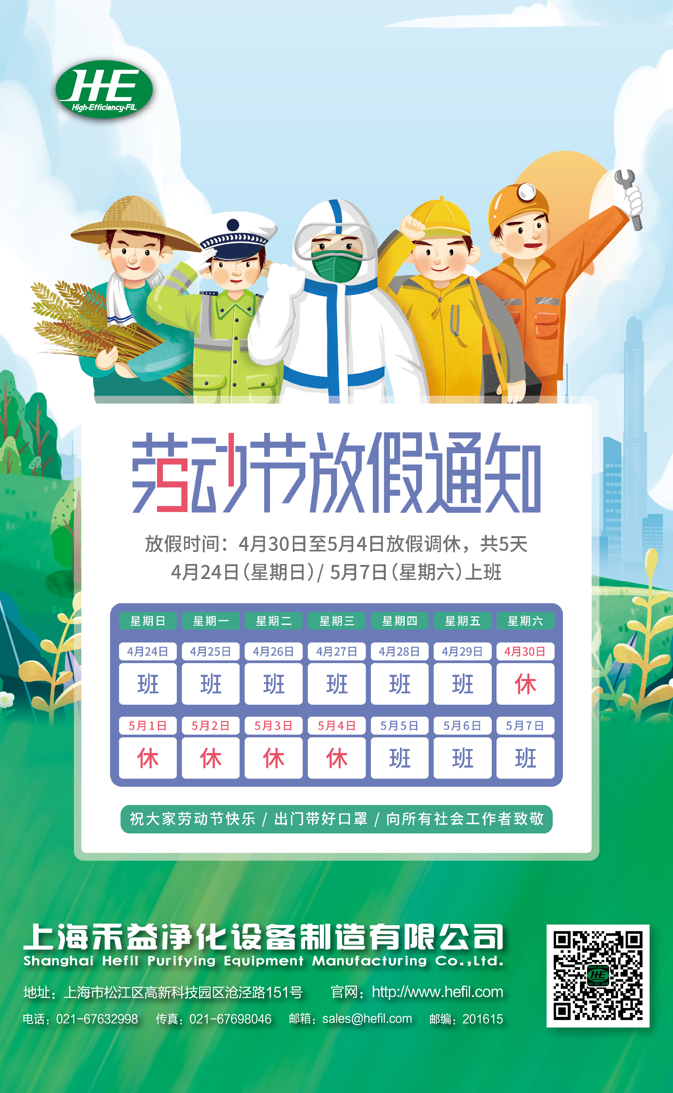 特此告知,禾益環境提前祝您勞動節快樂!
