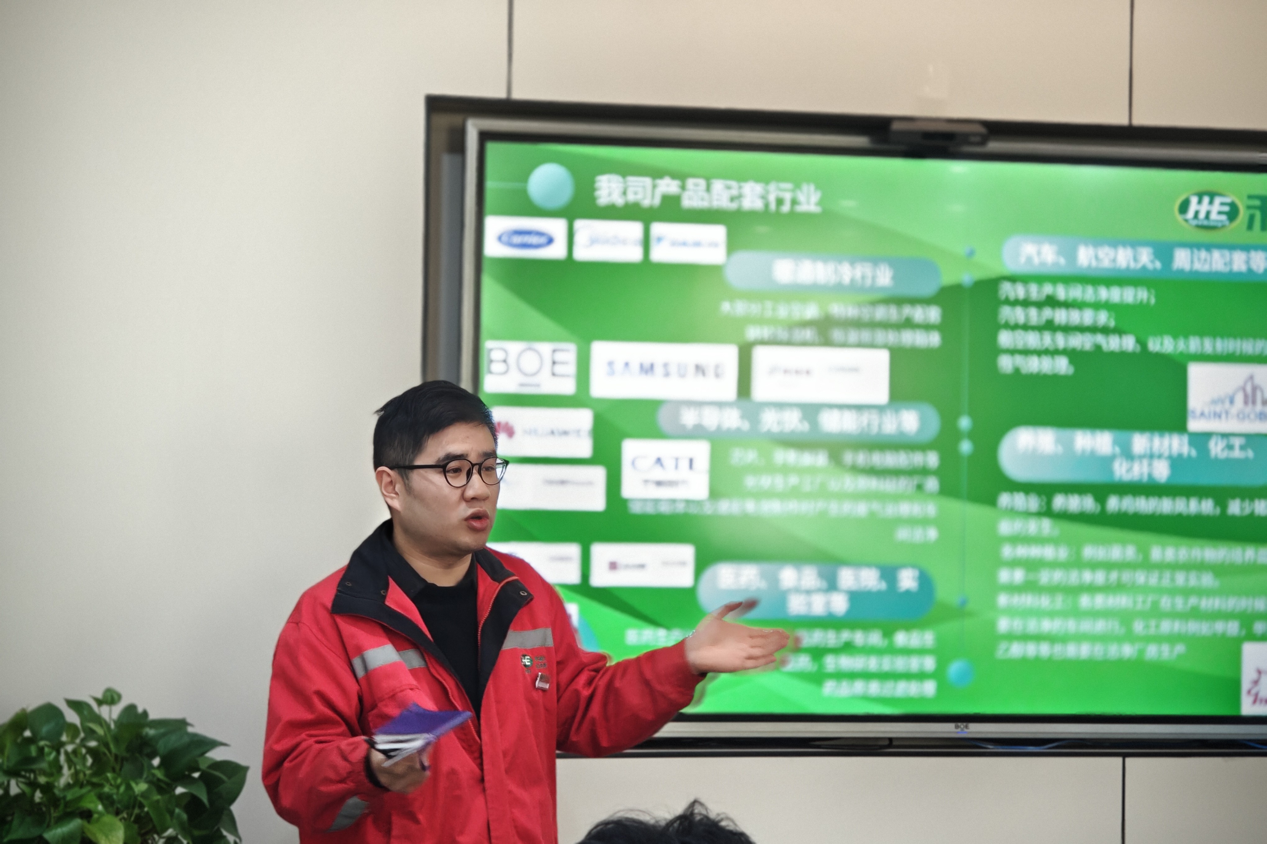 隨后,禾益環(huán)境產(chǎn)品經(jīng)理王金航先生向同學(xué)們介紹了我司的發(fā)展歷史、業(yè)務(wù)范圍、核心產(chǎn)品以及解決方案等。著重闡述了禾益環(huán)境在智能制造領(lǐng)域如何快速構(gòu)建“技術(shù)創(chuàng)新化、產(chǎn)品綠色化、服務(wù)智慧化”方面的研究成果及應(yīng)用案例。加深了同學(xué)們對禾益環(huán)境“因潔凈而生·為環(huán)境而鑄”企業(yè)理念的理解。