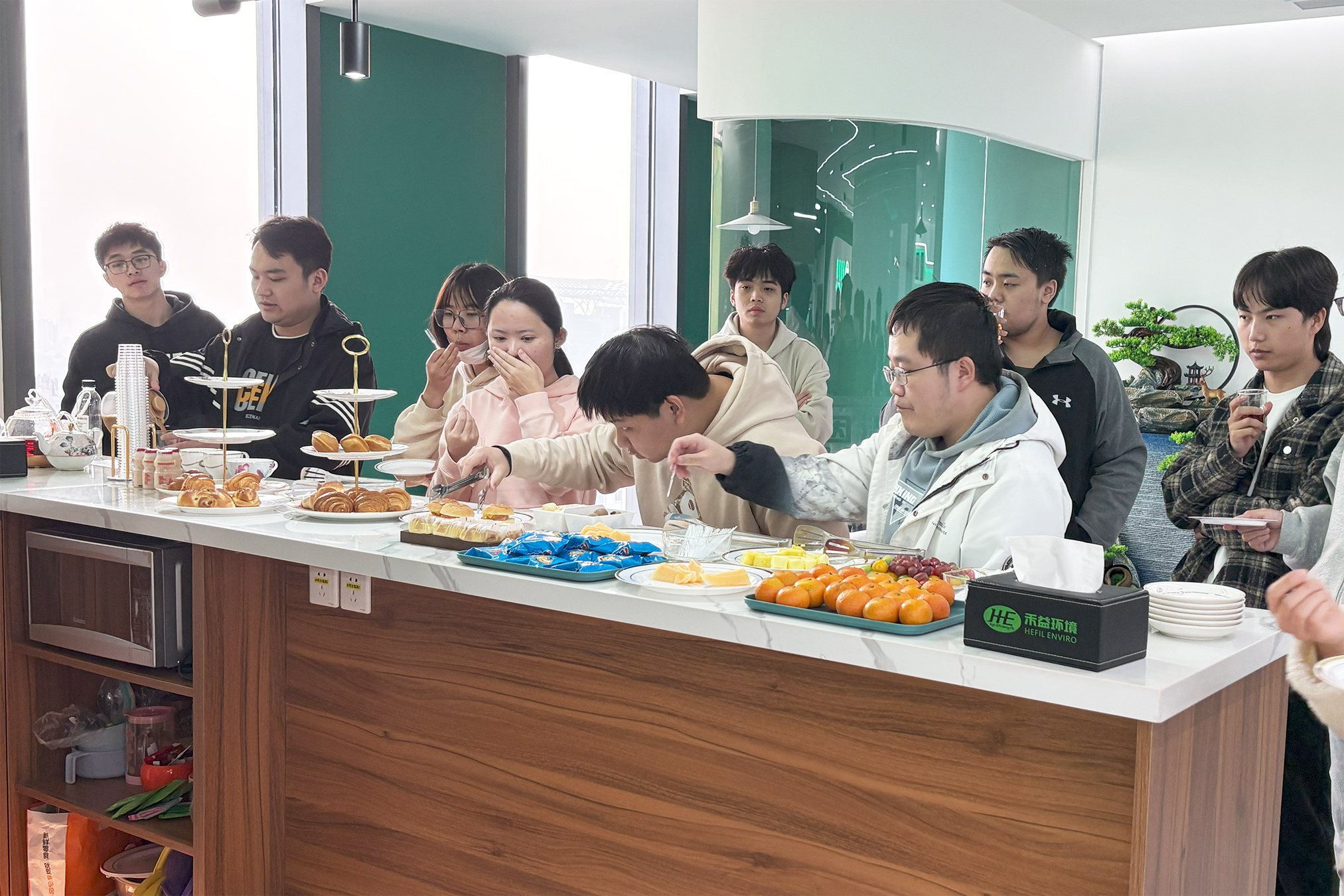 在中場休息環(huán)節(jié),禾益環(huán)境還貼心設(shè)置了各類茶點和飲品,更好地招待前來參觀交流的老師和學(xué)生,讓大家在輕松愉快的氛圍中暢所欲言。