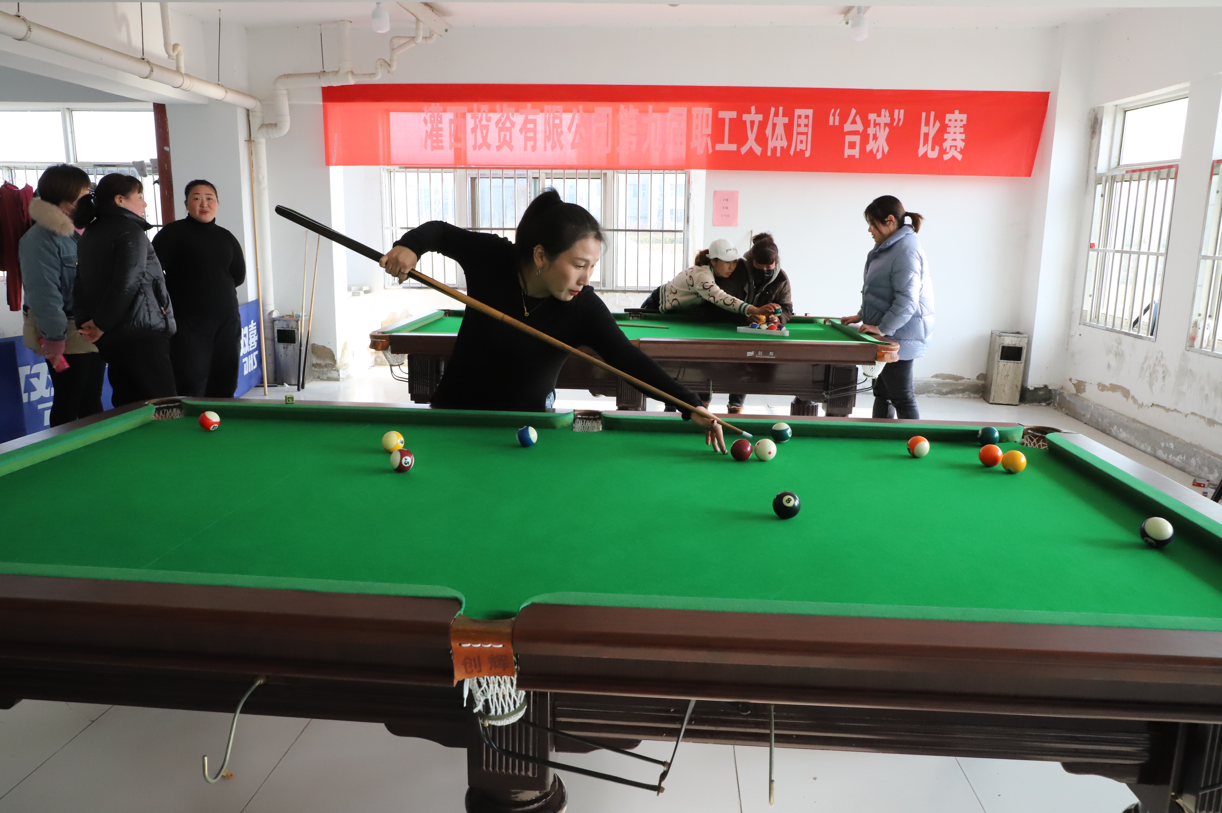 下午進行了女子臺球比賽,各參賽選手盡展球技、揮灑激情、有的參賽者冷靜思考,沉著對戰;有的參賽者時而大力進攻,時而輕碰防守,使得每局比賽都異常激烈、精彩紛呈。