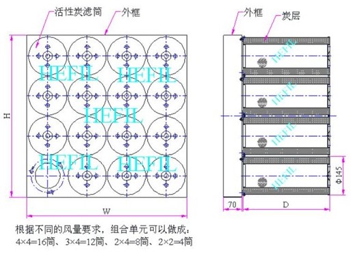 活性炭空氣過濾筒是個多?途化學過濾產品,它可搭配不同種類的化學濾材,達到多?途的?態污染物去除?段,如揮發性有機化合物,酸性、堿性氣體,甲醛,汞蒸氣,放射性氣體。