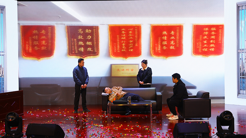 演出在舞蹈《祖國你好》中拉開序幕,隨后,一個個歡快、喜慶、祥和的文藝作品相繼上演。這其中,既有充分展現臺北發展力量的情景劇《我們是臺北力量》《南泥灣暢想》,也有大氣磅礴的男女對唱《不忘初心》和小合唱《眾人劃槳開大船》,有草原氣息的笛子獨奏《牧民新歌》,諷刺當下“躺平式”干部的廉潔作風小品《坑》,展現公司活力的男團《舞蹈:串燒》《山丹丹花開紅艷艷》,奇特、神秘的魔術表演,一腔情懷的京劇《沙家浜-唱段軍民魚水情》……最后,在機關全體人員帶來舞蹈《相親相愛的一家人》中落幕,高潮迭起、精彩不斷,得到廣泛好評。