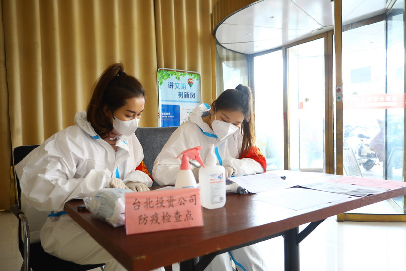 丁銳、戴鴻鳴一行在臺北機關臨時辦公點接受測量體溫、消毒、掃描大圣碼后進入臨時辦公區。丁銳對“嚴格卡口”管理表示認同:工作人員精神面貌好,操作專業。