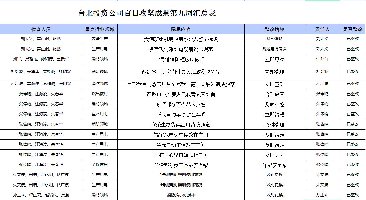 臺(tái)北投資公司百日攻堅(jiān)成果第九周匯總表