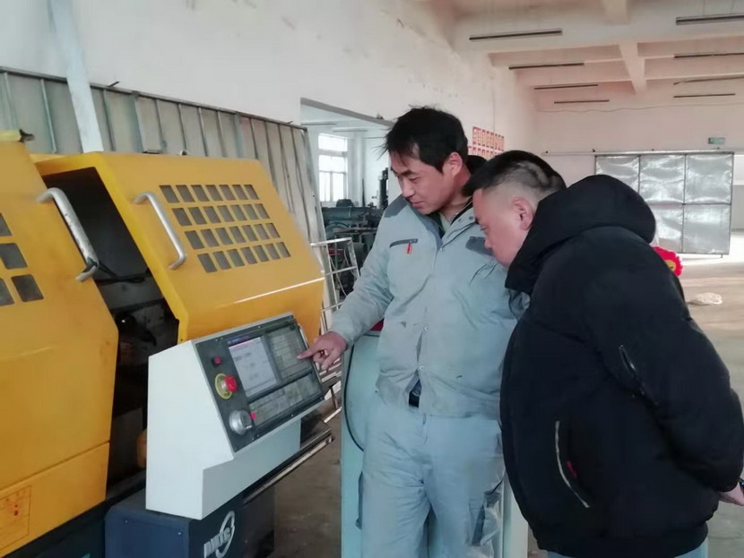 ▲2021年度星級員工-趙原塵(藍衣)指導新員工操作數(shù)控機床