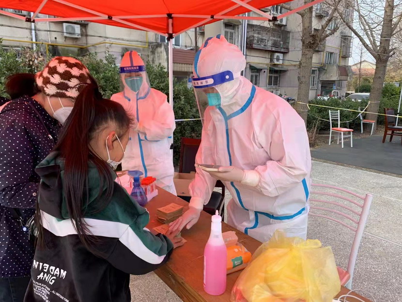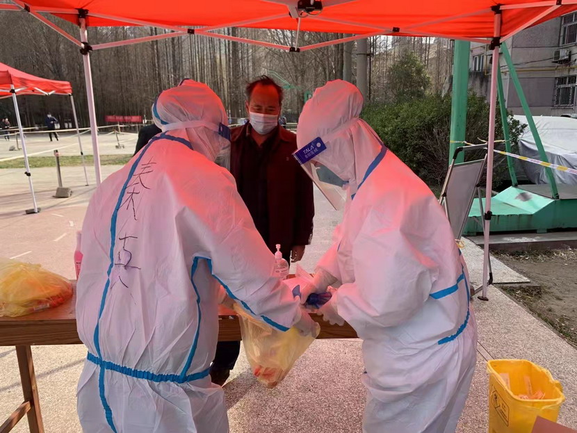 然而隨著疫情越發嚴重,小區核酸檢測員人手又緊張了起來,“我可以,這幾天我都學會了,最基本的我都會”秦英又是第一個舉手到最前線。這下她更忙了,每天凌晨三點起床做飯,五點社區報到,一直堅守到晚上八點。為了節省防護服,她一般都要等到中午2點多鐘才休息吃飯,這股毅力讓社區、街道領導看在眼里,服在心上,連一直牢騷怪話的幾個群眾也為她由衷地豎起大拇指。