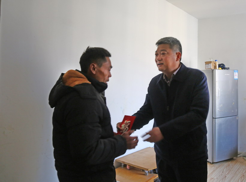 近日,集團公司黨委書記、董事長楊龍,集團公司副總經(jīng)理匡友本來我公司走訪慰問參加過抗日戰(zhàn)爭的老黨員廖壽康和困難職工,向他們致以新春祝福和美好祝愿。投資公司黨委書記、董事長、總經(jīng)理王德志,黨委副書記、工會主席楊善革陪同慰問。