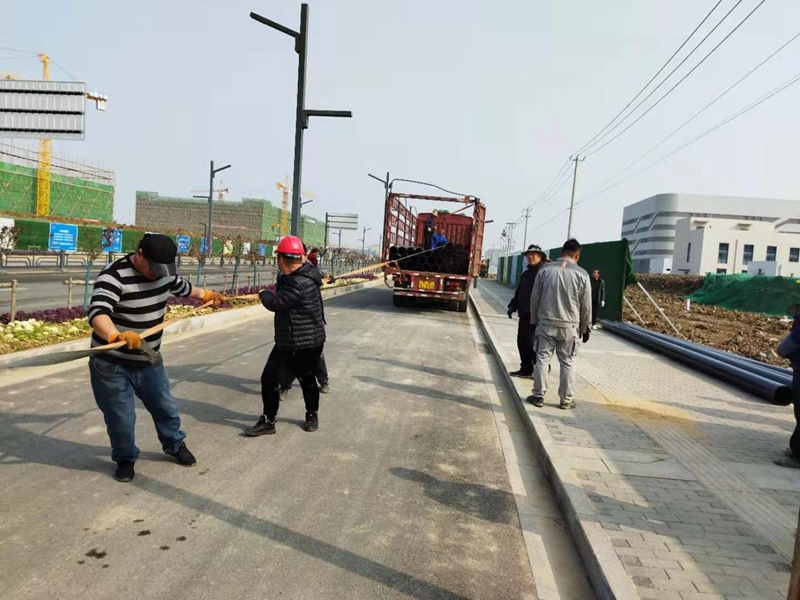3月14日清晨,在金橋路管道施工現(xiàn)場(chǎng),早已是人頭攢動(dòng)、號(hào)子聲響,隨著一根根9米長(zhǎng)的PE250管道被有條不紊的卸下車,金橋路鈣液管道遷建工程順利拉開(kāi)序幕。
