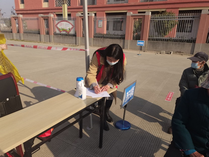 ? ? ? ? ▲(左起,海州灣黨支部副書(shū)記蘇玲、醫(yī)護(hù)人員、海州灣女工胡超)
