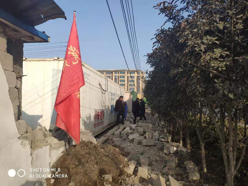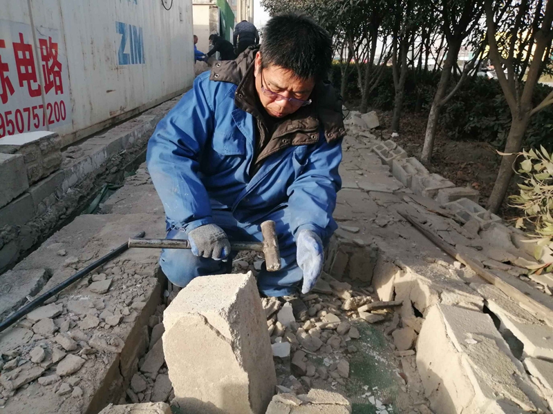 據(jù)悉,該處墻頭整體倒塌,大多數(shù)磚塊沒有受到損壞。志愿者們一塊一塊的挑選、清理、搬運(yùn),將可以回收利用的磚塊整理好,用于墻頭的修葺。水泥、沙的配比不太熟悉,天氣寒冷如何做好防凍,怎么辦?臨達(dá)公司的退休老黨員主動站了出來,為圍墻修葺工作做指導(dǎo),提供幫助。經(jīng)過兩天的奮戰(zhàn),將倒塌的墻頭修葺好,并拉好了美化綠布。