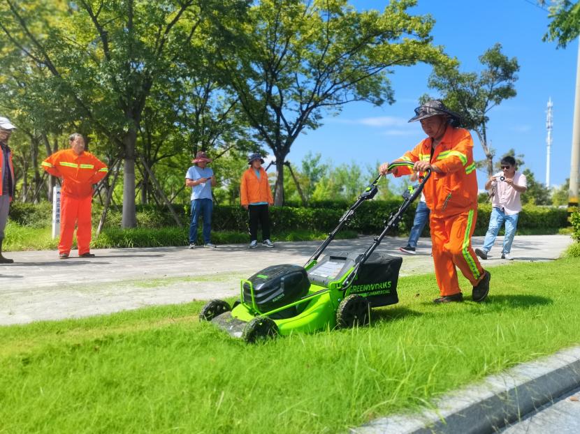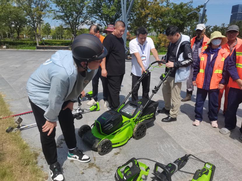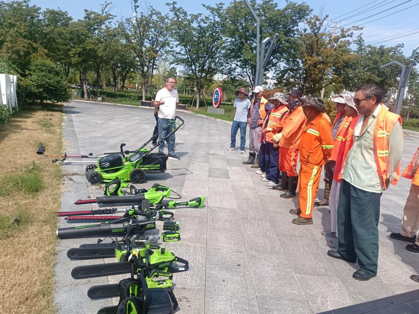 8月16日,創(chuàng)智綠園內(nèi)綠意盎然、生機(jī)勃勃。為積極響應(yīng)國家環(huán)保政策,提升綠化養(yǎng)護(hù)效率與質(zhì)量,綜合管理部精心策劃并組織開展了“綠化新型電動機(jī)械展示與試用”活動。本次活動特別邀請了綠化分公司和益豐園林分公司的專業(yè)團(tuán)隊參與,共同見證了電動綠籬機(jī)、電動割灌機(jī)、電動草坪機(jī)、電動鼓風(fēng)機(jī)及電動鏈鋸等先進(jìn)設(shè)備的風(fēng)采。